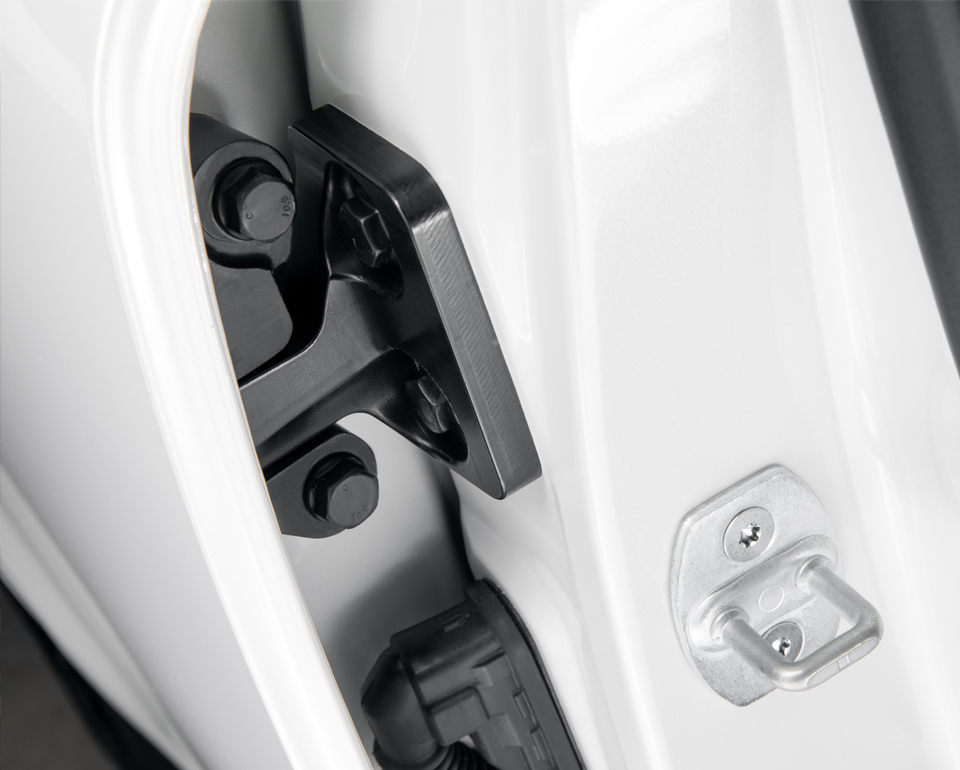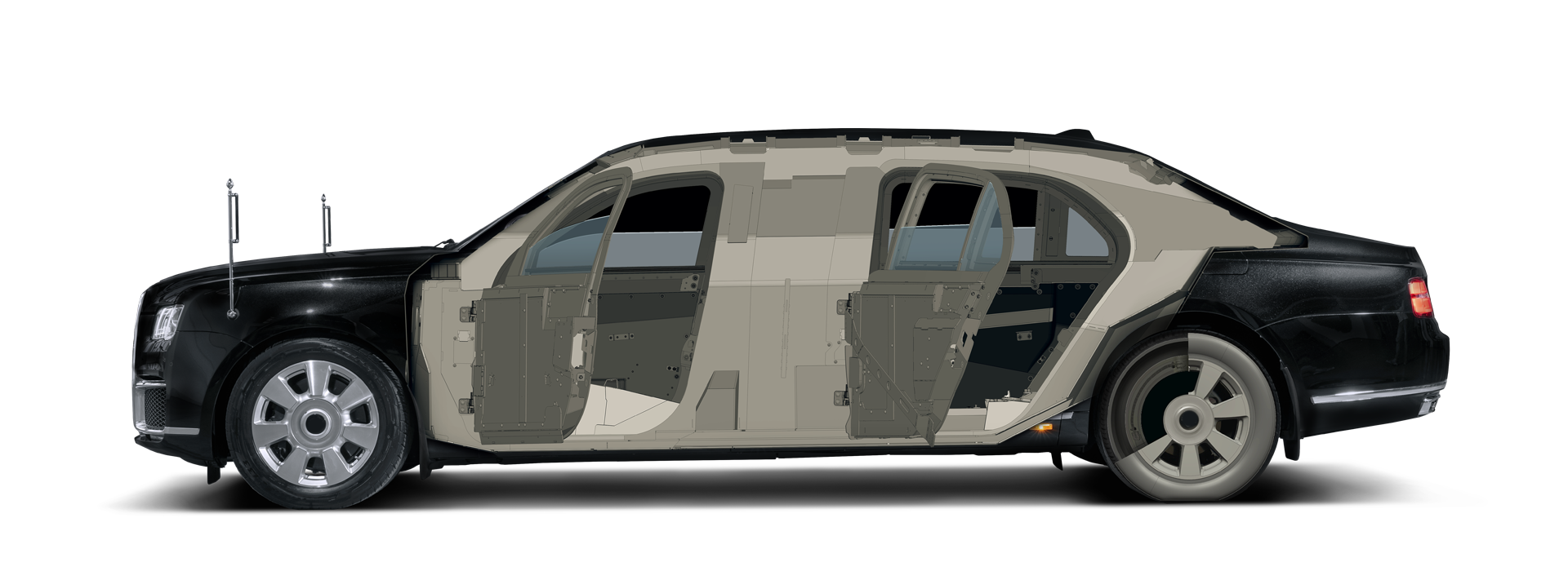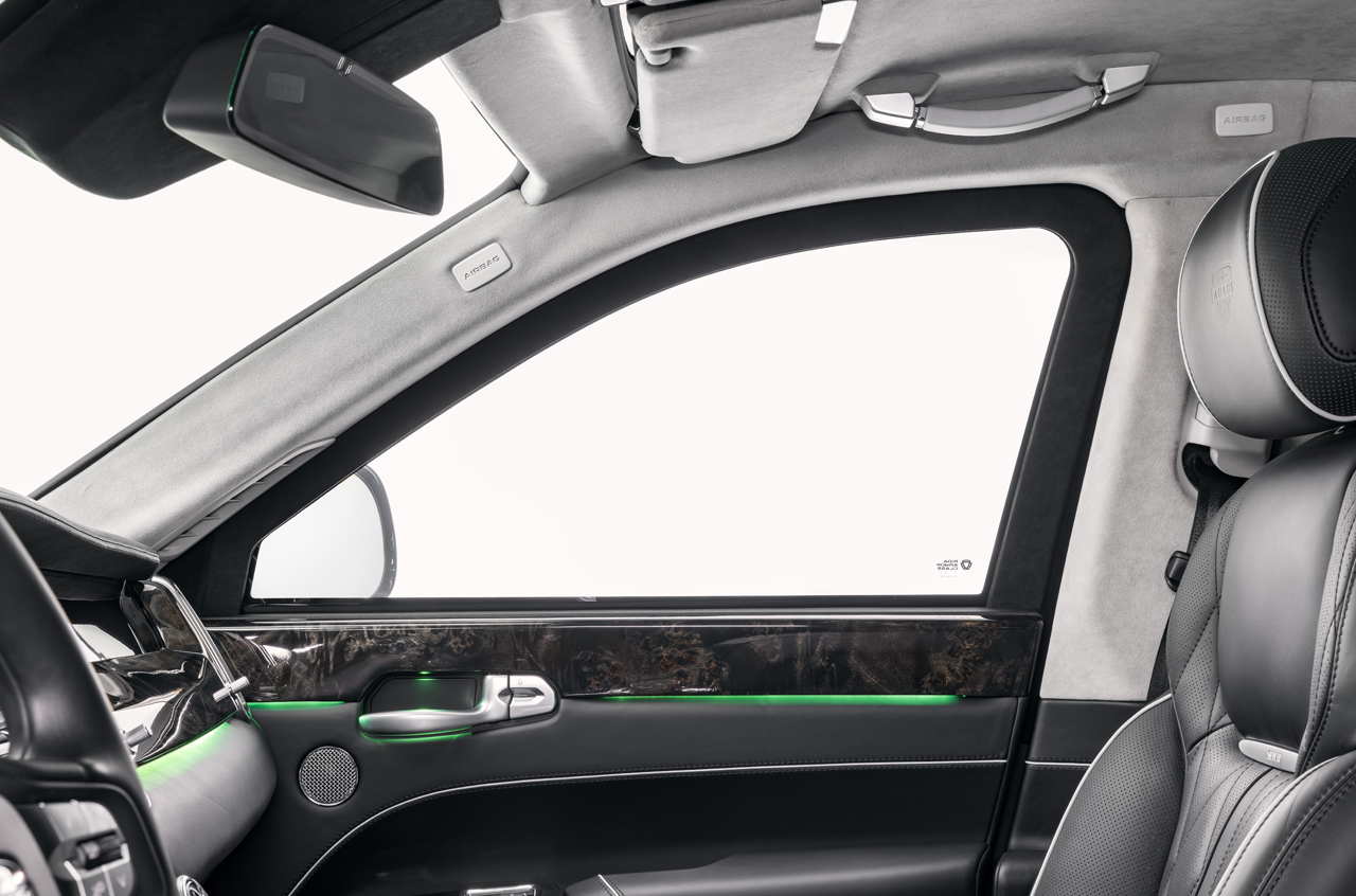 Слабым местом бронированных автомобилей считается зазор между дверью и кузовом, так как традиционно эта щель пропускает в салон больше всего свинца. Обычно эти участки закрывают пулеуловителями, которые уменьшают дверной проем и абсолютно бесполезны против подрыва (бронестекла после взрыва выпадают наружу, оставляя пассажиров незащищенными). Нам не нравится это решение, поэтому мы разработали и запатентовали собственную конструкцию бронированных рамок, которые не изменяют площадь проема и защищают от любого вида атак. При этом в отличие от аквариумов с устаревшими технологиями, у автомобилей RIDA все четыре стекла опускаются специальными стеклоподъемниками, позволяя передавать документы для проверки или проветривать салон.