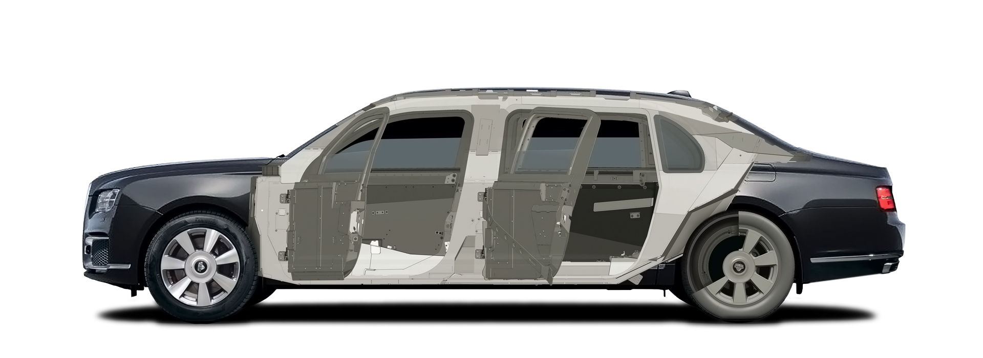 Слабым местом бронированных автомобилей считается зазор между дверью и кузовом, так как традиционно эта щель пропускает в салон больше всего свинца. Обычно эти участки закрывают пулеуловителями, которые уменьшают дверной проем и абсолютно бесполезны против подрыва (бронестекла после взрыва выпадают наружу, оставляя пассажиров незащищенными). Нам не нравится это решение, поэтому мы разработали и запатентовали собственную конструкцию бронированных рамок, которые не изменяют площадь проема и защищают от любого вида атак. При этом в отличие от аквариумов с устаревшими технологиями, у автомобилей RIDA все четыре стекла опускаются специальными стеклоподъемниками, позволяя передавать документы для проверки или проветривать салон.